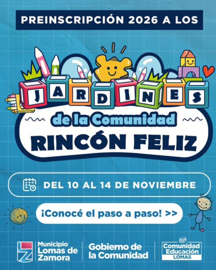 El Municipio de Lomas de Zamora dio inicio a la inscripción online para los Jardines de la Comunidad Rincón Feliz, destinada a niños y niñas para el ciclo lectivo 2026. El período de inscripción, que se extiende hasta el próximo viernes 14 de noviembre, permite anotar a los menores en cualquiera de los 18 establecimientos educativos que ofrecen educación gratuita en diversos barrios del distrito.